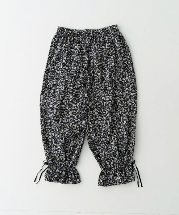 Linen Cotton Floral Flare-Hem Pants